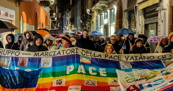 Dietro il telo zuppo dei Marciatori per la Pace, ci sono anche i rappresentanti della politica di casa: il sindaco Fabio Bergamaschi con gli assessori Anastasie Musumary e Gianluca Giossi, i consiglieri comunali Laura Zanibelli e Matteo Gramignoli, il consigliere regionale Matteo Piloni, tra gli altri. In piazza Garibaldi il serpentone si arrotola attorno al vessillo dai sette colori, steso sui sampietrini. Se il silenzio è il grido più forte, ora le voci si slegano. Perché chi predica la pace non è un illuso. E risuonano i principi della Dichiarazione universale dei diritti umani, echeggiano le parole della Nobel pakistana Malala Yousafzai, rimbombano i pensieri di Papa Francesco espressi nell’ultimo Messaggio per la pace: «La guerra è un virus senza ancora vaccino. Il nostro tesoro più grande, seppure anche più fragile, è la fratellanza umana».