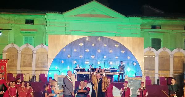 Dopo la partenza di oggi si prosegue questa sera alle 17 con l’apertura delle taverne e del mercato, mentre alle 21 convivio in piazza, con un grande spettacolo in cui si narreranno la storia dell’Uomo nel suo percorso verso la redenzione accompagnato dalle figure allegoriche della Giustizia, della Bellezza, della Pigrizia e da molte altre figure che in questo tragitto metteranno alla prova le capacità dell’Uomo.