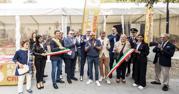 CREMONA - Taglio del nastro della Festa del Salame, la tre giorni dedicata al re degli insaccati, organizzata da Sgp Eventi di Stefano Pelliciardi e promossa da Consorzio Salame Cremona e Confartigianato. In programma degustazioni, ma anche tante curiosità: dal salame di torrone al maxitramezzino, piuttosto che la musica realizzata con il re dei salumi. Forme e colori a non finire, grandi salami e sottilissimi strolghini, imponenti mariole e cotechini panciuti contenuti a stento dall’intreccio di spago. Poi panini immacolati macchiati di un rosa intenso, quasi rosso, fette che si sciolgono in bocca e salumi di un rosa acceso che fanno da pendant con insaccati di cinghiale più scuri e compatti: eccola, la Festa del Salame pronta ad attirare nel cuore della centinaia di curiosi e golosi. Da ieri è aperto anche il Festival della Mostarda, che nel cuore dei giardini pubblici offre una scelta di mostarde tutte rigorosamente cremonesi che è un piacere vedere e assaggiare. Fino a farsi venire i lacrimoni agli occhi.