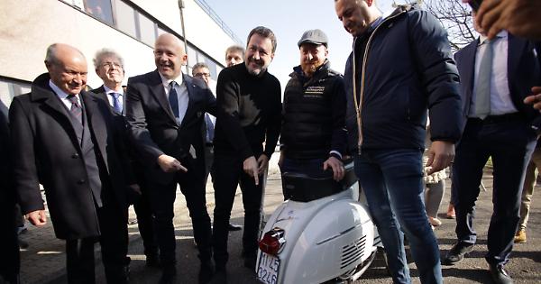 CREMONA - Il ministro delle Infrastrutture e dei Trasporti e vicepresidente del Consiglio, Matteo Salvini, ha partecipato oggi alla consegna della prima targa storica ottenuta con la re-immatricolazione dei veicoli di interesse storico. La prima targa è stata infatti consegnata a Mirko Spinelli, proprietario di una Vespa 180S bianca del 1965, prodotta in 34 mila esemplari. Quella consegnata da Salvini è in assoluto la prima targa conforme all’originale prodotta dall’Istituto Poligrafico ed è stata apposta da Jonathan Bussoleni con l’aiuto dello stesso Salvini.