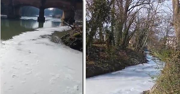 CREMA - Schiuma bianca e spessa nel Serio. È scesa dalla roggia Molinara, che entra nel fiume a fianco della Colonia Seriana. Probabilmente deriva dallo sversamento a monte di detergenti.