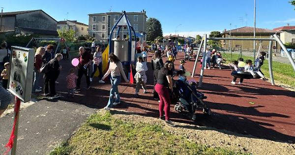 MONTICELLI - Grande festa per la benedizione e inaugurazione del nuovo parco giochi di piazza Resistenza, intitolato a Lidia Rossi e Pippo Fanzola. In occasione del taglio del nastro il sindaco Gimmi Distante e il consigliere Matteo Rossi hanno ringraziato le aziende locali che hanno contribuito alla causa, permettendo di ricavare un’area inclusiva che è molto piaciuta ai bambini, come dimostra l’entusiasmo seguito all’apertura del cancello.