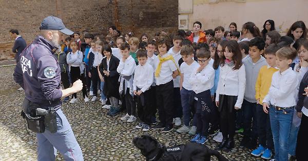 CREMONA - Nel silenzio rimbomba la sirena della volante. Ed è così potente che tutti i bambini si tappano le orecchie. Uno di loro domanda ai poliziotti: "Ma non vi dà fastidio?". "Siamo abituati". Poi, tocca a loro: cantano magnificamente l’Inno di Mameli - ‘Fratelli d’Italia, l’Italia s’è desta…’ - diretti dal maestro Antonino Campisi. Quindi, è tutto un "wow" quando arriva la sorpresa: Barolo e Frida, quasi 5 e quasi 9 anni, Labrador dell’Unità cinofila scesi da Milano.