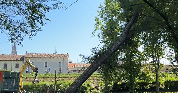 Stamattina gli operai del Consorzio Forestale Padano, armati di motoseghe, hanno fatto pulizia. E, esattamente alle 10.13, hanno abbattuto il terzo altissimo pioppo risparmiato l’altra sera dalla bufera. Un’operazione necessaria per evitare ulteriori rischi. Visto quel che è successo, si può ben dire che sia andata bene. «Per fortuna non ci sono morti o feriti», ha commentato nell’immediatezza dei fatti il sindaco Filippo Bongiovanni. Un sopralluogo ieri è stato effettuato dal responsabile dell’ufficio tecnico, l’ingegner Enrico Rossi. Mobilitata anche la Polizia locale.