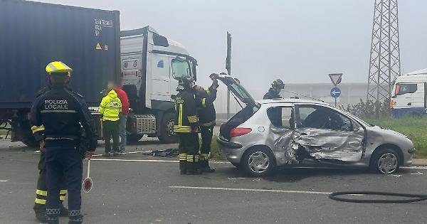 CREMONA - Schianto sulla statale Padana Inferiore a San Nazzaro, all’altezza del polo logistico. Attorno alle 9.30 a scontrarsi sono stati un autoarticolato che stava lasciando il Magna Park e una Peugeot che stava viaggiando in direzione Cremona: lievemente ferita l’anziana conducente dell’utilitaria, che dopo le prime cure sul posto ha rifiutato il ricovero.