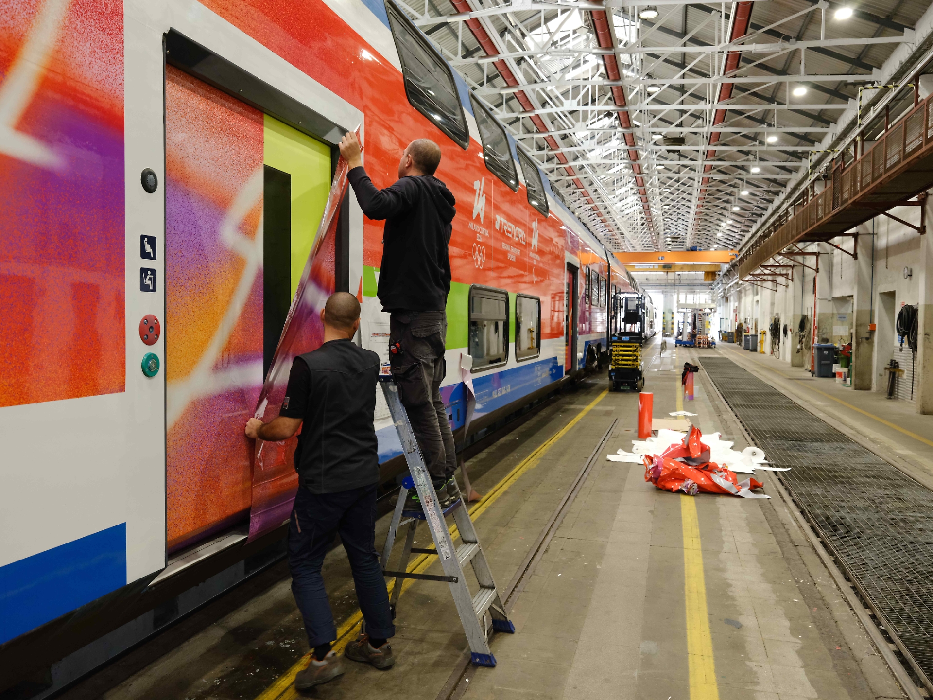 La livrea sarà applicata su due Caravaggio aeroportuali, che viaggiano fra Milano e Malpensa Aeroporto e accoglieranno i visitatori che atterreranno a Malpensa per l’appuntamento olimpico, due Caravaggio destinati al servizio regionale su linee ad alta frequentazione e due Donizetti, destinati alle linee della Valtellina. I primi due treni sono già stati 'vestiti' e il terzo è in fase di preparazione: ci vuole una settimana per completare il lavoro.