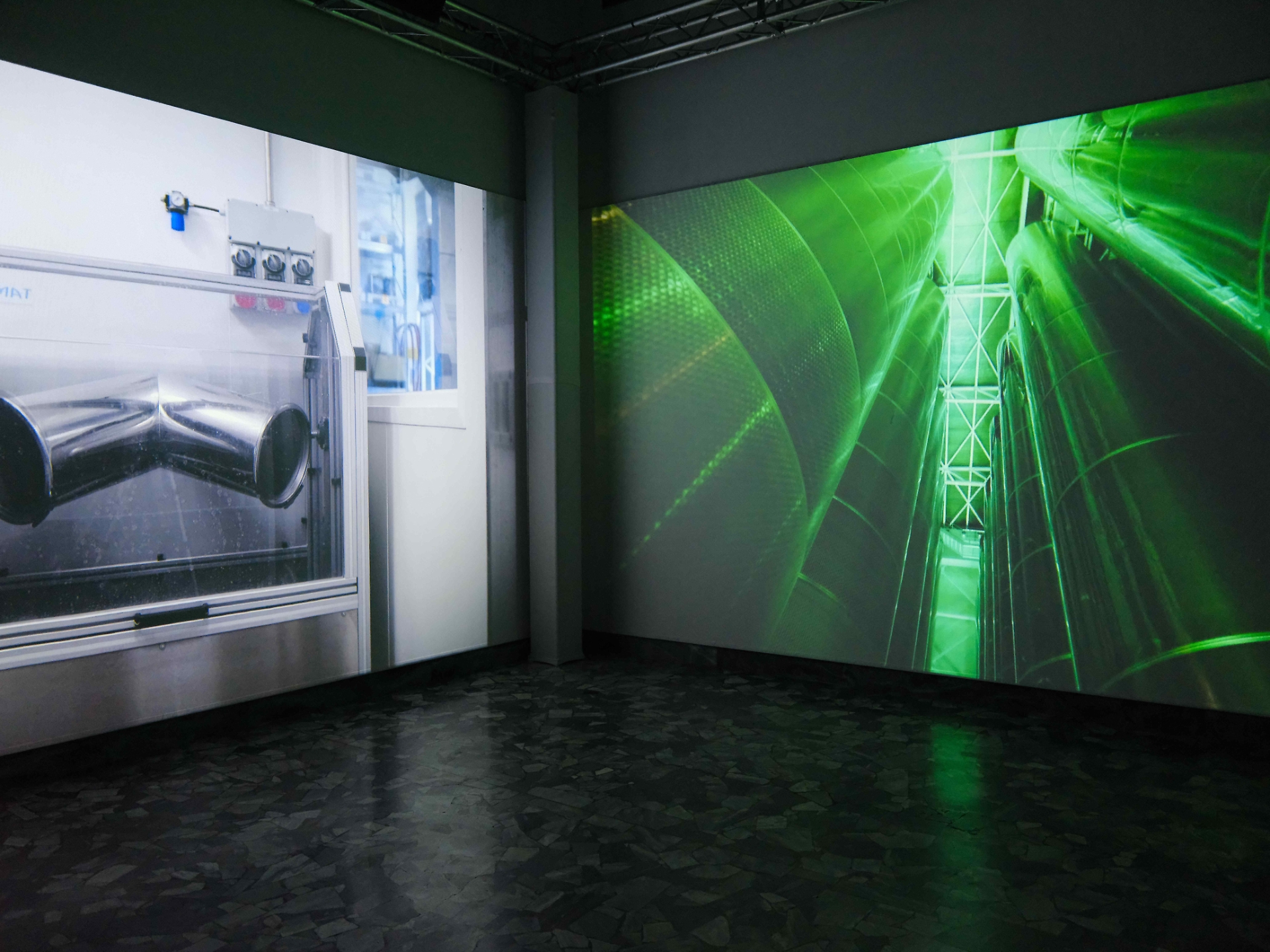 Dal suggestivo titolo ‘Le idee, le mani, il tempo’ la mostra (ideata da Nebbia Phygital Lab) si articola su 5 sale, in un percorso che si snoda attraverso immagini, suoni, documenti e oggetti iconici. Si comincia con due enormi schermi sui quali sono proiettati i video di macchinari e lavorazioni di diverse imprese del territorio, dagli impianti di mungitura alla raffinazione di prodotti chimici.