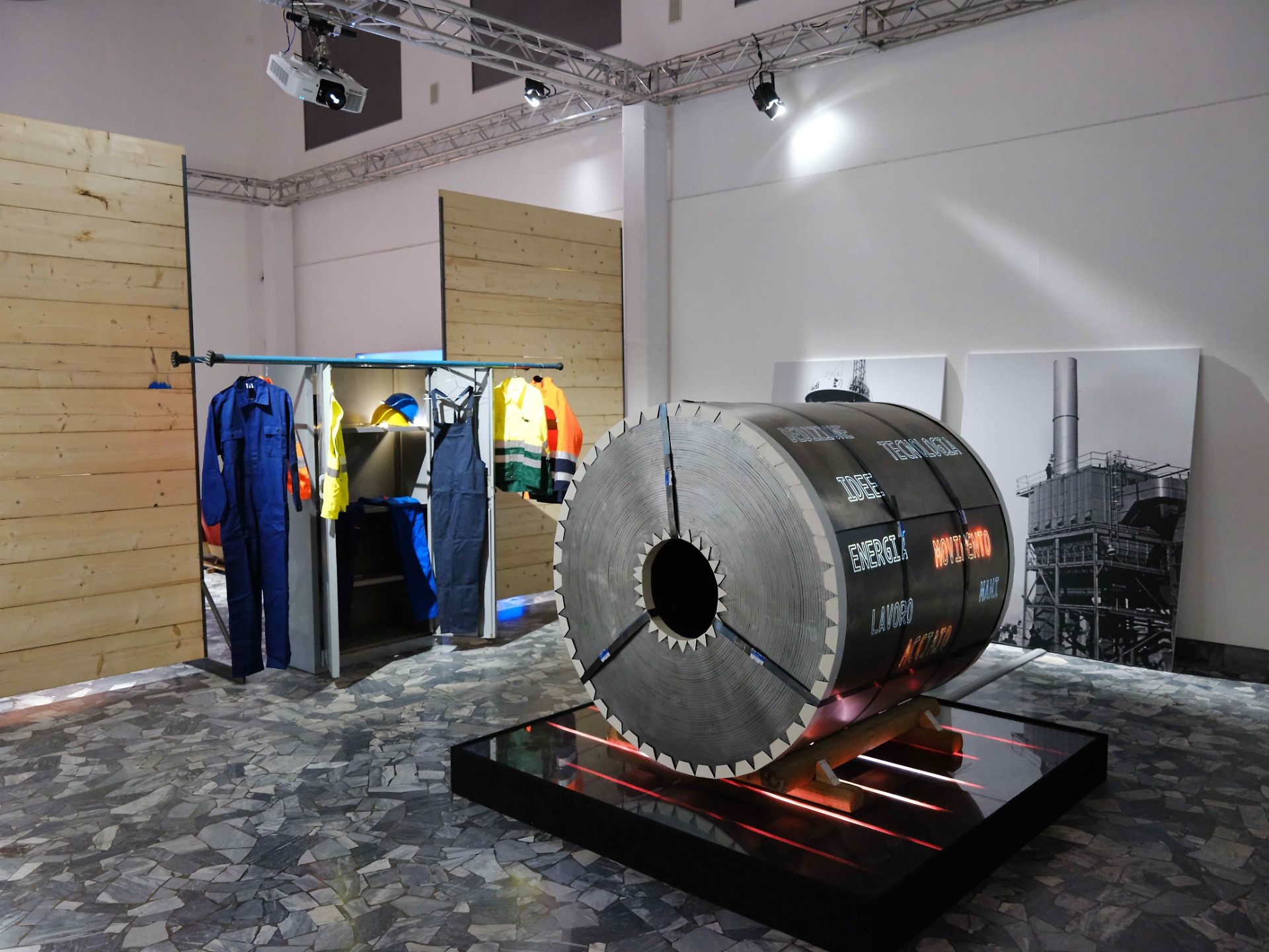 Il visitatore vive «un’esperienza immersiva nei processi produttivi» che continua nella seconda sala, dedicata all’industria pesante: al centro della sala domina un coil, la base per tante lavorazioni del settore, sul quale vengono proiettate parole «che raccontano la visione, i valori e l’identità dell’industria».
