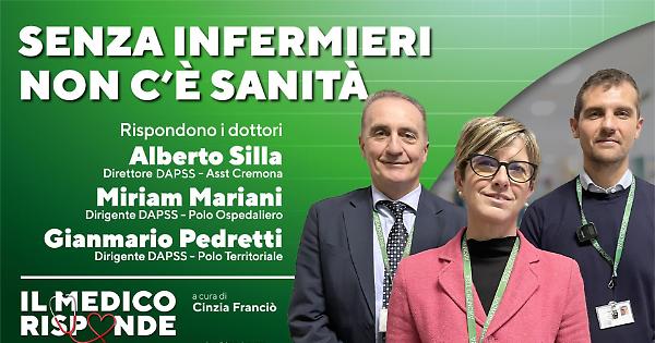 CREMONA - Protagonisti della rubrica ‘Il medico risponde’ sono il dottor Alberto Silla, direttore DAPSS (Direzione Aziendale Professioni Sanitarie e Sociosanitarie) di Asst Cremona; la dottoressa Miriam Mariani, dirigente DAPSS - Polo Ospedaliero; il dottor Gianmario Pedretti, dirigente DAPSS - Polo territoriale.