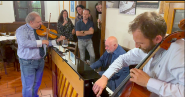 CREMONA - Metti una sera a cena. Quattro giganti della musica si ritrovano per caso nella stessa osteria di Cremona accanto a liutai e musicofili reduci dalla giornata conclusiva di Cremona Musica International Exhibitions. L'atmosfera conviviale invita alla condivisione e alla conversazione. Che, sempre più appassionata, si sposta attorno al pianoforte al centro della sala dell'Osteria degli Archi. Enrico Pieranunzi accenna una frase ai tasti bianchi e neri. E agli altri ospiti illustri non serve altro. Mentre patron Manolo Mosconi serve i dessert, il liutaio cremonese Michele Dobner estrae uno dei suoi violini dalla custodia e lo affida alle mani di Roby Lakatos. Nello stesso istante Geoff Westley – arrangiatore e produttore londinese che ha messo la sua firma su capolavori di Peter Gabriel, Phil Collins, Lucio Battisti, Renato Zero e altri big – raggiunge Pieranunzi al piano. Non si fa pregare il violoncellista trentino Nicola Segatta, che sfodera istintivamente il suo strumento completando così l'improvvisato quartetto di virtuosi. Germina d'acchito una versione torrenziale di Libertango, torrida come il movente del "pensiero triste che si balla" e frastagliata come una jam session dal sapore jazz. La performance prosegue libera e tumultuosa per quasi due ore, sotto gli occhi stupefatti dei fortunati clienti. Uno spettacolo unico, a suo modo già storico: una magia (forse) irripetibile.