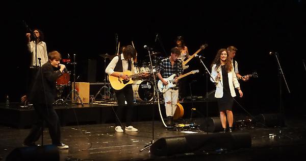 CREMONA - Continua a regalare grande musica (e grande divertimento) sia al pubblico che a una nutrita schiera di talentuosi giovani musicisti il progetto Back To School, quest'anno guidato da Riccardo Zanotti, frontman dei Pinguini Tattici Nucleari. Ieri sera al Ponchielli è andato in scena l'ultimo atto del laboratorio musicale promosso dal Comune (Settore Politiche Educative e Istruzione), in coproduzione con la Fondazione Ponchielli, e in collaborazione con l’Istituto Superiore di Studi Musicali Monteverdi e l’Istituto d’Istruzione Superiore Stradivari. Schierata sul palco c’era la Back to School Band 2022, composta da Giulia Libretti, Vittoria Cola, Emma Marchetti, Lucia Cominelli alla voce, Filippo Lanzoni, Nicola Casagrande alla chitarra e voce, Gaia Volpe, Nicolò Zilioli alla batteria, Cristian Pavesi, Riccardo Riboni alla chitarra, Miriam Fabiano al basso, Pierattilio Bazzana, Francesco Demaldé al violino, Adina Cifoletti alla viola, Maria Rita Repetti al violoncello. Con loro un secondo ospite speciale e fino all’altro ieri inatteso: Elio Biffi, tastierista della stessa band bergamasca.