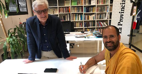 CREMONA - «Basterebbe spegnere il cellulare per qualche ora, lasciarlo a casa un giorno. Impariamo a distinguere tra ciò che è necessario e ciò che non lo è»: allontanare la fretta, riappropriarsi di un tempo in cui non si deve produrre nulla. È uno dei suggerimenti di Lama Michel Rinpoche, maestro buddhista oggi in visita a Cremona. L’incontro in Comune con il sindaco Andrea Virgilio, un intervento in sala Maffei voluto da Matteo Paloschi e da un comitato organizzatore con il supporto tecnico dell’Adafa. E il tempo - prezioso - di una conversazione nella redazione del quotidiano La Provincia, accolto da Cesare Soldi (presidente della Libera), Riccardo Crotti (past president regionale di Confagricoltura) e Paolo Gualandris, direttore del giornale.