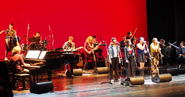 CREMONA (9 giugno 2019) - Una festa sotto i riflettori del teatro Ponchielli. L’edizione numero tredici di Back to School, il laboratorio musicale che vede coinvolti i ragazzi delle scuole superiori della città - un percorso curato dal Comune di Cremona in collaborazione con la Fondazione Ponchielli - è giunta ieri al suo momento finale con il tradizionale concerto conclusivo. Sul palco, insieme alla formazione 2019 della Back To School Band - selezionata da un team di docenti di musica – c’era anche Lodo Guenzi, voce de Lo Stato Sociale, artista-guida scelto per coordinare questa edizione del progetto. Trionfatore con la sua band al Festival di Sanremo 2018 (arrivarono al secondo posto con Una vita in vacanza), Lodo ha voluto imbastire coi ragazzi una scaletta basata non esclusivamente sui brani dello Stato Sociale.