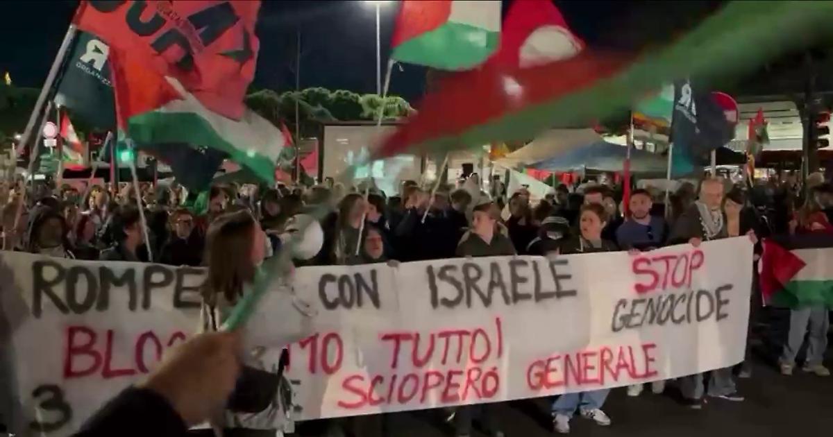 Flotilla, Pro-Pal occupano Piazza dei Cinquecento a Roma