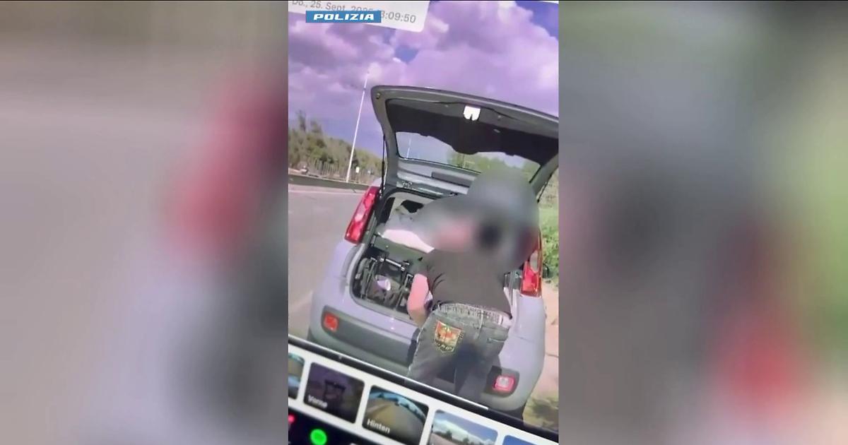 Ruba zaini e borse di un turista, incastrato dalla dash cam dell'auto