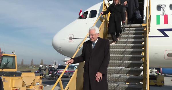 Il presidente Mattarella arriva all'aeroporto di Vienna