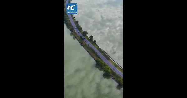 Cina, "Sky Road" sull'acqua, nell'Anhui le auto sembrano scivolare tra le nuvole